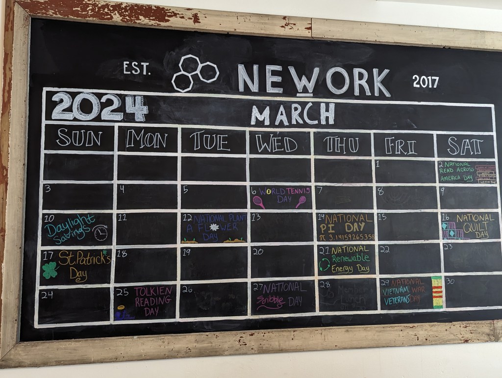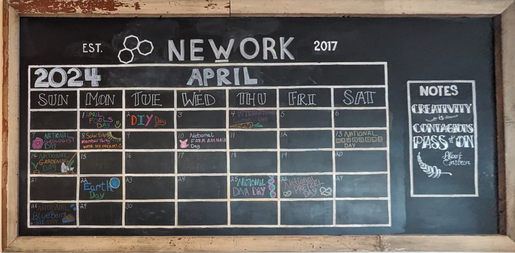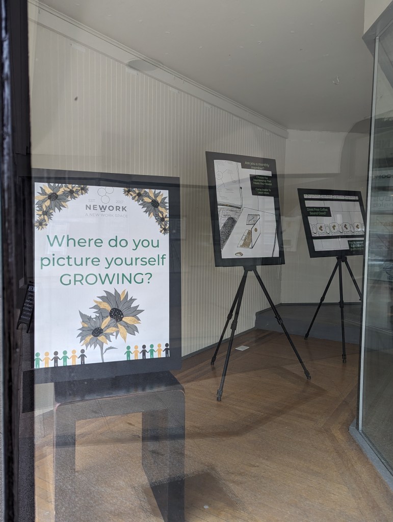 “Jessica did a variety of projects for us. We used her major talent of illustrative drawing for our front window display, digital artwork for social media posts, drawing for our monthly calendar, and photo capturing for marketing. She did significant projects that included researching statistics, designing marketing posters with fresh creative design, NEWORK branding including layout, pictures, and verbiage, and creating and vectorizing logos for our members. She also made us a surprise project that was a NeWork-themed Monopoly board since we have monopoly pictures in our Space.